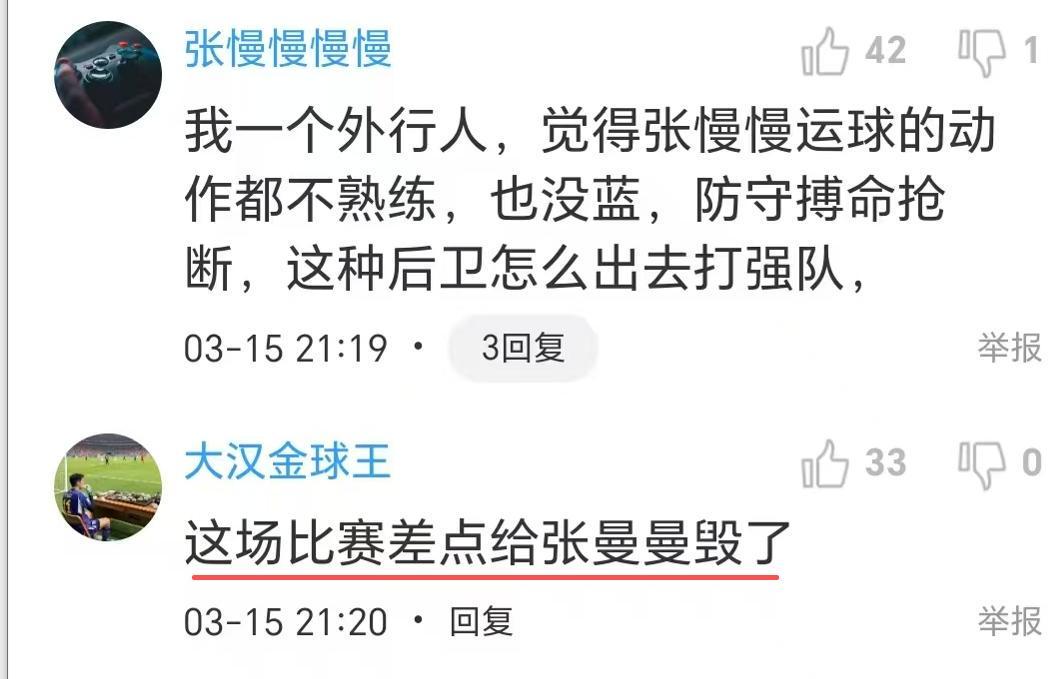 在众多新人中,表现最糟糕的就是控卫张曼曼,继一场5中1后,昨晚又是5中1,还有3次失误,没突破,没篮子,只有失误和0罚球。这个张曼曼真是看了让人崩溃,场场拉稀,队友失误在那儿一脸不爽,也不积极回防,自己辣眼失误,一脸无辜,谁给的自信?球迷说,“我一个外行人,觉得张慢慢运球的动作都不熟练,也没蓝,防守搏命抢断,这种后卫怎么出去打强队?”,“这场比赛差点给张曼曼毁了”。